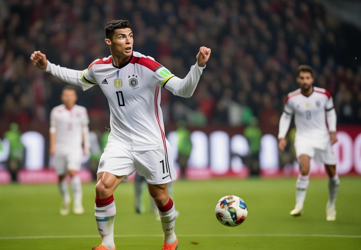 C罗,葡萄牙的足球王子,他的身高和力量在场上如同一座不可逾越的堡垒。他的射门精准而有力,每一次起跳都让人屏息以待。C罗的足球诗篇,是对力量与决心的赞歌。